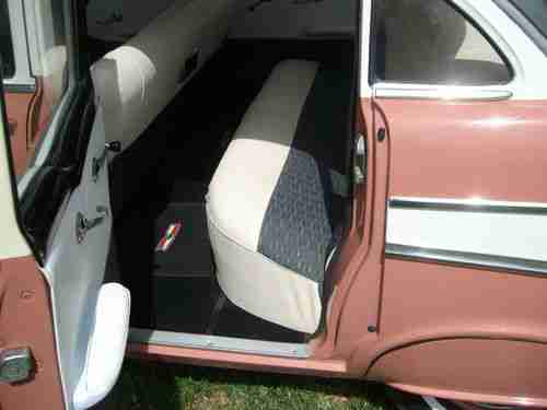 This car has super nice chrome. New chrome at restoration time include new bumpers, grill bar, rockets, scoops, headlight bezels, front fender extensions, door mirrors, front fender louvers, emblems and chrome window visors. Other new parts at restoration time include new gas tank, exhaust, hoses, belts, electric windshield wiper motor, water pump, brake job including brake lines and master cylinder. The car has a dealer installed oil filter. The car has had a tune up with wires, cap, rotor and plugs. The radiator has been recored, the starter and generator have been rebuilt and a special order aftermarket 55-57 radio with cassette has been installed (original radio also comes with the car). Interior is all original so it does show a little wear. The carpet is newer. Car has been driven very little since restoration.