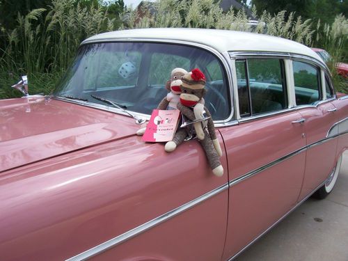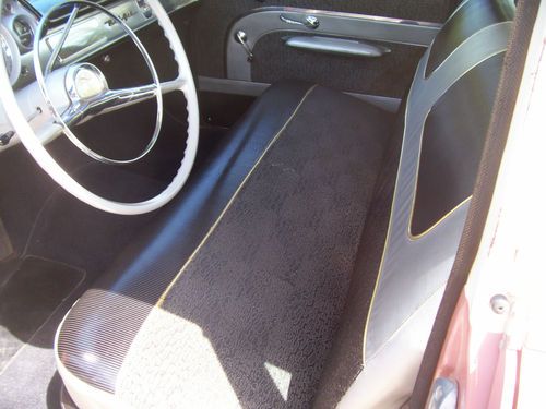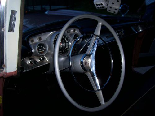 Up for auction is my 1957 Belair with one re-paint of Canyon Coral w/India Ivory White Top. The motor is a 283 with a 4 barrel and is automatic transmission. My paperwork says that in Nov. 201l a new fuel pump and carburetor kit, 8 spark plugs, plug wires were installed. It has a new battery replaced this year. Also I had installed a new gasoline tank and all new lines up to the carburetor. I have alittle bit of information that was in the the glove box: the original Owner's Service Policy, first owner's name was Ralph Hubbs of Wilson City, KS. The engine number is VC57K147355. Key number is #8594 (we still have the original key with 8594 stamped on the key). The car was bought by him at Ulrich Chevrolet Co. Lucas, KS in l957. I also have automobile registration receipt l957 and l958 issued to Ralph Hubbs. Have the original 1957 Guide To Your New Chevrolet pamphlet .