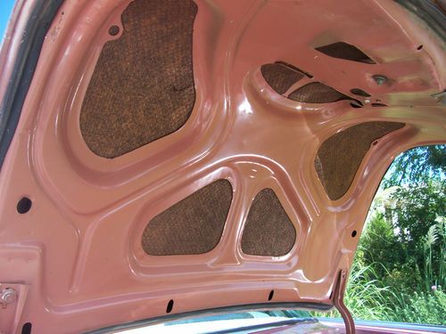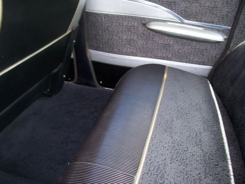 The interior is the original Black & Silver and is very nice. The only flaws being a small gap on the seam along the front seat and also one on the back seat seam (as shown in the pictures).. This can be an easy fix for an upholstery guy. The carpet appears to be the original & is pretty decent. The gauges all work except for the left blinker. This car shows 68,887 on the odometer. The paint of the car is in "Driver Quality" condition. Some scratches and cracks in the paint. Inside the trunk is the spare tire (which is flat but on the orig. wheel) and the car bumper jack. I found a very small amount of rust on both of the back door passengers bottom door frame by the chrome. It is about 1" long. Chrome trim is decent for it's age. The bumpers are original. The back bumper where the gas cap opening (by the fin) has been oxidized over the year and is dull. This car is factory radio delete. The back seat window shelf has shag carpet that is not glued on. Underneath the shag carpet the surface is very nice and is not faded or water stained.