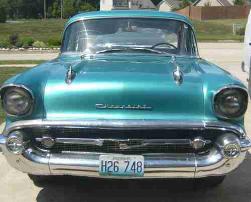 This is my 1957 Chevrolet, It runs like a champ, fun to cruise in. Needs lots of minor repairs like weather stripping, some replacement glass, a few small surface rust spots, a updated radiator, and a couple of chrome peices on the trim could use replaced. I have not taken it on any long trips only on local cruises. Overall this car is in good shape and gets lots of looks and smiles when cruising down the road! Starts great for me and has good pick up and go! This car is solid with very limited problems compared to some i have seen this old. Nada value on this car is low $9500.00, avg. $13,800.00, and high $22,500.00. I am certain this car is well above low value but will be putting up for sale with a low reserve for a quick sale. The car drives good but i would recommend a trailor pick up if the distance from me is greater than 50 miles. All items are sold as is with no warranties. Good Luck and Good Bidding!