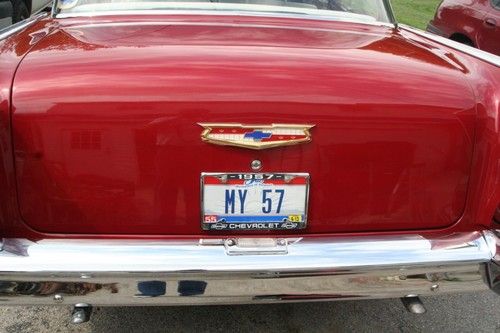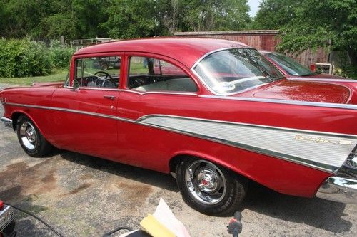 Up for auction is my 1957 Chevrolet . started with Alabama car NO RUST This car has been completely restored. New 15 inch radials 15" Rally's with matching center caps ( spinners) New grill, new grill bar, new 3 piece hood bar, new hood emblem, new retractable antenna, new door handles, new interior, ( headliner, door panels , carpet, seat covers, sun visors, new sun tac,) new bumpers, new rear tail light assy. New radiator 4 core, new rebuild 350 punched 030 over making 355. new carb, new hooker headers, new aluminum intake, new water pump, new electronic ignition, new heater core, new wiring harness for alternator, new battery, new hoses belts, and everything else. we went through everything. topped it off with a medium metallic red paint. it looks and drives great. everything that needed powder coated got it inner fenders, core support, , we even powder coated seat springs front and rear. I wanted it to be maintenance free. You have any questions feel free to contact me about anything. email or call 937-418-9233 Randy Got to many toys something has to go 47,300.00 invested NO RESERVE auction . Some one is going to get a great deal on this car.