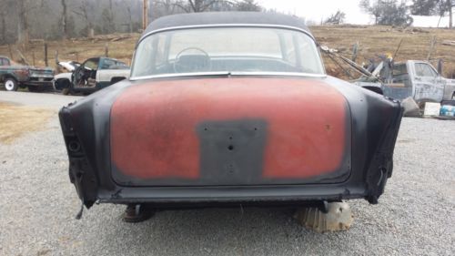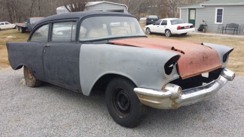 UP FOR AUCTION IS A 1957 CHEVROLET 2 DOOR POST THAT WOULD MAKE A NICE RAT ROD, BUT OTHERWISE NEEDS COMPLETE RESTORATION. CAR NEEDS FLOOR PANS, TRUNK METAL AND OTHER BODY WORK. THE FRAME SEEMS TO BE SOUND. SEE THE PICTURES FOR DETAIL AS I TRIED TO SHOW ITS RUST AREAS AS MUCH AS POSSIBLE. FENDERS ARE IN REALLY GOOD SHAPE, HOOD IS IN DESCENT SHAPE FOR RESTORATION. THE WINDSHIELD AND BACK GLASS HAVE BRAND NEW RUBBER WEATHER STRIPPING THAT WAS PUT IN THE CAR LAST WEEK. I HAVE GOOD DOOR GLASSES THAT ARE NOT IN THESE PHOTOS THAT I WILL INCLUDE WITH THE CAR. THE TITLE ON THE CAR IS OPEN AND CLEAN. THIS CAR IS FOR SALE LOCALLY AND THEREFORE IF IT SELLS LOCALLY IT WILL BE REMOVED FROM AUCTION AT THAT TIME. CALL 423 626 9390 AND ASK FOR BUTCH FOR SERIOUS QUESTIONS. SERIOUS BIDDERS ONLY PLEASE. 500.00 DEPOSIT IS NONREFUNDABLE. IF YOU ARE NOT PLANNING ON PAYING FOR THE CAR PLEASE DON'T BID.