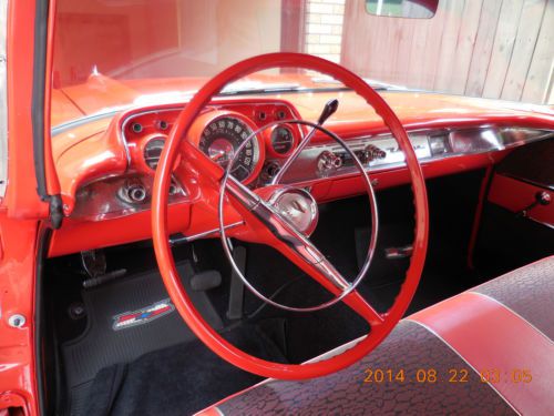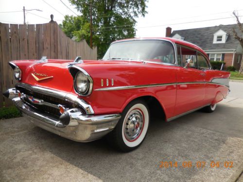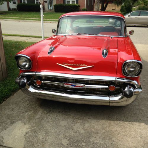 Restored car with all original GM parts - Number Matching - 283 Power Pak w/Powerglide transmission New interior New glass New chrome New bumpers This true 57' twin antenna Bel Air is show room new condition. Every single part on this car down to the bolts has been gone through and restored or replaced with original GM parts. |