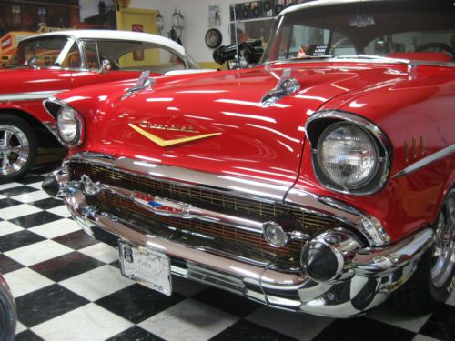 This is one fantastic Restomod. No expense has been spared on the car. This car was restored from a very solid western car. The sheet metal on the car is original. It has a 454 cu in motor with a mild cam and 2x4"s that is chromed out with new chrome and polished aluminum in the engine compartment. It has electric cut outs with custom exhaust. The transmission is a Tremec 5 speed with a 11" hydraulic clutch. The car is equipped with Ididit tilt, polished aluminum, power steering, power 4 wheel disc brakes, a custom fabricated 9" Ford rearend with coil overs and traction control. Battery, battery compartment and built in charger is in trunk. It has base coat, clear coat paint and the correct original style Ciadella interior. Everything on this car is near perfection. This is my personal car. I have over $100K invested in the car. I don't use the car and would like to sell the car to someone that would enjoy the best '57 restomod in the country.