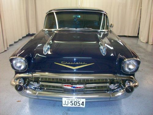 1957 Chevrolet Bel Air 2 door hardtop for sale my loss your gain. I'm not testing the water I'm a motivated seller clean TEXAS title in hand . My boys want a classic 50's truck so she's got to go to make room in the garage. The 57 has Big fins, chrome to spare, gold emblems, and stainless quarter panels let you know you are looking at the icon that is the 57 Chevy. Painted in a beautiful single stage Dark Blue color, this car is sure to draw stares whether cruising down the strip, or taking home trophies at car shows. The inside of these tri-five Bel Airs is a sight to behold with the two tone vinyl and cloth interior (this one in blue and black), 4 seat belts, AM/FM/Cassette, tinted windows, driver side are new and I have the other side as well just haven't had time to replace them, new heater core, new vent cables, new started, and one of the most beautiful dashes ever produced. This particular 57 has been restored back in 1982 , ,front disc brakes, aluminum radiator, electric fan, Boyd Coddington crown wheels, and radial tires. V8 automatic transmission 700 R transmission... This is the 2 door hardtop model, which are typically more desirable than post cars because you can roll your windows down and have no obstruction, just wind blowing all around you. Tri-Five Bel Airs, or 55, 56, and 57 model year cars, have a huge following and are great investment pieces. Located in Manor Texas, this beautiful 57 Chevy Bel Air email or text for additional information. This is not a matching numbers car and is a driver. We put it in a show this weekend and out of 25 tri fives we took first place. Please email me with any question and or offers, the car is listed local so I reserver the right to end the auction at anytime. Call, text or email me with any questions 512-848-7376 Thanks in advance