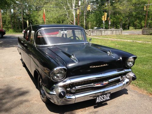 I am the third owner of this 1957 Chevy Bel Air and have owned it since 2005. I have most of the work history paperwork for the past 10 years. Car has custom interior including trunk with slight fading in the rear window section. I had the car in storage for aprox 3 years and recently pulled it out. I have done aprox $2,500 worth of work to get it running and top notch mechanical shape including new carburetor, new master cylinders on all 4 brakes, and replaced most/all bushings. Floor is intact and to my knowledge the frame and body are all original.