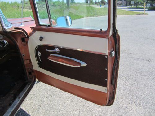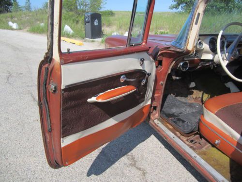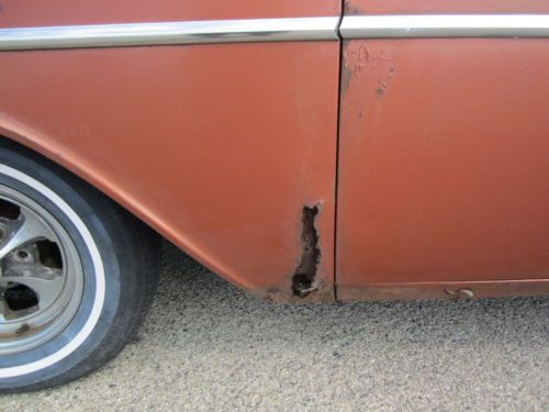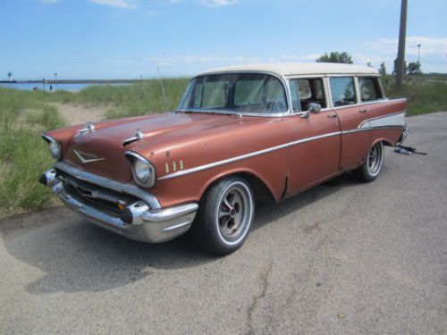 Up for auction and for your consideration is this Sierra Gold 1957 Chevrolet Bel Air 4 Door Station Wagon for restoration or drive as is. Mostly original! It starts, runs and drives great. Amazing original seat upholstery, door panels and headliner. The engine was rebuilt several years ago... approximately 5000 miles ago and it starts and runs great. There are rust issues... please see photographs. Clear title. Inspections are welcome by appointment. If you have any questions please don't hesitate to ask. They will be answered as promptly as possible. Please look at the photographs closely. They are an important part of this description. This beauty is being sold in "AS IS" condition with no warranty. Payment terms are $500 deposit within 48 hours of the end of the auction and the balance in the form of a certified or bank cashier's check within 7 days of the auction end or cash at time of pickup. On Jul-07-14 at 21:10:14 PDT, seller added the following information: There is a crack in the windshield and a "star" in the passenger side rear door window. |