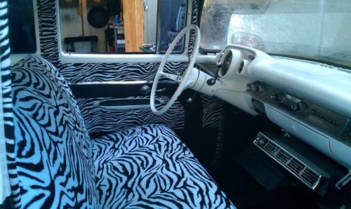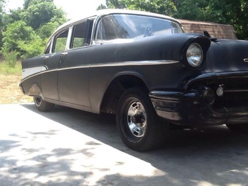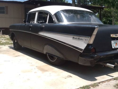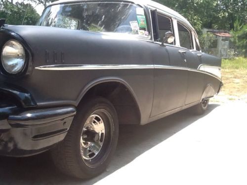 1957 chevy belair 4dr. odometer shows 28xxx but i have put 5000 miles since being built, new crate 350 from jegs with holley 4 barrel carb, rebuilt turbo 350 tranny with b&m shift kit, starter, alternator, aluminum radiator, headers with straight pipes and flame throwers, air conditioning, air ride. Needs a fuel gauge sending unit for gauge to be accurate. car was built by me as a daily driver interior is black and white zebra print, paint is flat black with white roof. Jump in and drive anywhere, expect alot of questions and looks when your driving it. i drove from Deland Florida to Springfield Illinois pulling a trailer and was getting around 17 mpg. has a reese hitch in rear bumper. remember its a 57 year old car built as a daily driver not a show car so its not perfect, no refunds because you expected it to be perfect. i drive it i don't hide it and take it out once in awhile. just titled in illinois waiting on title from secretary of state.