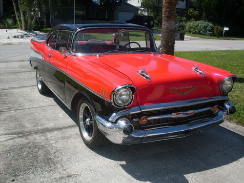 UP FOR AUCTION IS MY 1957 CHEVY. IT IS A REAL BELAIR ( VIN CODE STARTS WITH VC) ENGINE IS A REBUILT 350 CU IN, 30 OVER WITH FLAT TOP PISTONS AND A MILD CAM. TRANS IS A 4 SPEED HURST. OPTIONS INCLUDE FRONT POWER DISC BRAKES, CLOSE RATIO POWER STEERING. AM.FM STERIO. FRAME OFF RESTORATION 3 YEARS AGO WITH NEW BODY MOUNTS. FLOORS, TRUNK, ROCKERS ARE SOLID FRAME IS PAINTED BLACK. CAR IS ALL METAL, NO RUST. CUSTOM TRI COLOR PAINT. COMPLETE NEW INTERIOR INCLUDING SEATS,DOOR PANALS AND HEADLINER. NEW FRONT END. DRIVES STRAIGHT AND HANDLES LIKE A MODERN CAR. AMERICAN RACING POWER COATED 17 IN WHEELS, TIRES ARE LIKE NEW. BUMPERS ARE RECHROMED. TRIM IS IN VERY GOOD CONDITION BUT COULD USE NEW TRIM AROUND REAR SIDE WINDOWS.THIS IS A TURN KEY CAR THAT RUNS GREAT. YOU ARE WELCOME TO COME SEE THE CAR OR HAVE IT INSPECTED BEFORE AUCTION ENDS. CAR IS FOR SALE LOCALLY AS IS (ASKING 27500 ) RESERVE IS SET MUCH LOWER TO SELL. ONLY SELLING DUE TO HEALTH AS I AM 64 YEARS OLD AND HAVE TROUBLE DRIVING A STANDARD SHIFT. IF YOU HAVE ANY QUESTIONS OR NEED MORE INFO PLEASE CALL BEFORE AUCTION ENDS. JOE 631-831-5215 |