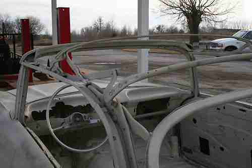 1957 Chevrolet Belair Convertable found in shop. project in progress. This car has been sitting for 5-7 years in a shop.It has a 396 big block with a 4 speed tranny (RUNS AND DRIVES). Has a camaro subframe welded in place,new gas tank and filler tube installed,Power disc brakes on front and drum on the back, new brake lines and brakes , power steering, new rear shocks. The floor pans and trunck pans are in excellent shape, The flaking you see is the old undercoating flaking off.. The body is in excellent shape and is ready to paint. The doors and trunk lid and hood have been shaved (door handles,emblems,trunk latch and hood emblems have been shaved (removed)). There is a 1959 dash that has been installed but I do have a 1957 dash that comes with it. CLEAN AND CLEAR T.I have alot of chrome that goes with the car plus a lot of other things. I have pics of every thing I have. I do NOT have a front seat or door pannels . I do have a rear seat for 2 door HT that you can cut down for the car. I can not get all of the pics on ebay but just ask and I will send more just be specific on which ones you want. This is a nice solid car a lot of the hard stuff has been done and it runs and drives. If you have any questions call me at 913-796-6354.
