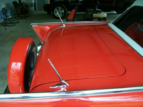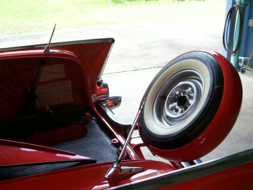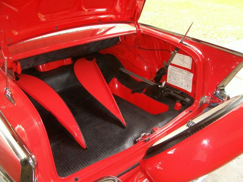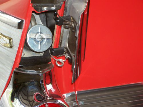 The restoration was done on a rust-free vehicle, no expense spared. It is loaded with NOS options. This is a dual-quad 283, 270 hp car, with a close ratio 3-speed transmission. It has a stainless steel exhaust system. Options include: Continental kit, backup lights, dual rear antennas (one power), electric wipers, deluxe heater, windshield washer, spinner hubcaps, fender skirts with stainless scuff shields, vacuum ash-out, tissue dispenser, Wonderbar radio, compass, dual spotlights, power top, clock, gold license frame, day/night mirror, rear deck trim, courtesy lights, door handle shields, front bumper guards, front rubber tips, and a padded dash. The padded dash is probably one of the best looking and best installed you'll ever find. The Old Cars Price Guide values a Number 1 '57 Convertible at $96,500; adding an additional 25% for dual quad cars brings the book value to $120,600. I figure the NOS options have a value of about $15,000, bringing the potential value of this car to $135,000. My reserve on this convertible is well under that number. This is a great opportunity to purchase a really nice '57 Convertible for less than retail value. Some owners don't like as many options; some people don't like continental kits or fender skirts. So, take them off and sell them. Make the car what you want it to be! I have some hard copy photos of the restoration process, and I have some computer photos before cleanup. I will accept some trade offers but only 55-56-57 Chevy trades. |