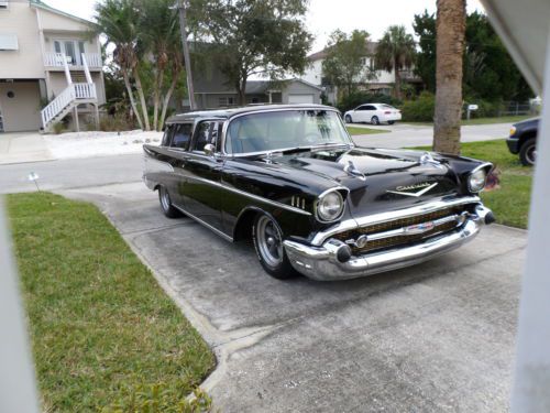 UP FOR AUCTION IS MY RARE 1957 NOMAD. 350-350HP GM CRATE ENGINE, ALUMINUM HEADS, 700R4 AUTOMATIC TRANS WITH OVERDRIVE, MILD SHIFT KIT. 9 INCH FORD REAR. GHOST FLAMES ON HOOD AND FRONT FENDERS. CAR IS EQUIPPED WITH VINTAGE AIR/HEAT 605 POWER STEERING, 4 WHEEL POWER DISC BRAKES AND POWER WINDOWS. ALSO HAS DUAL FLOWMASTER EXHAUST, SOUNDS GREAT. IT HAS BEEN LOWERED, TUBULAR A ARMS WITH DROPPED SPINDLES. ALSO HAS CUSTOM TWEED AND LEATHER WRAPPED INTERIOR, GRAY TINTED GLASS ( NOT FILM ) IN SIDE WINDOWS, AND AMERICAN RACING WHEELS WITH GOODRICH TIRES. A FEW SMALL NICKS ON FRONT OF HOOD FROM NORMAL DRIVING,SPEEDO NOT WORKING, MAY NEED NEUTRAL SAFETY SWITCH OR ADJUSTMENT. I PURCHASED THE CAR IN CALIFORNIA FROM A PRIVATE OWNER WHO OWNED IT FOR 25 YEARS. BEING FROM CALIFORNIA THIS CAR IS AS SOLID UNDERNEATH AS IT IS ON TOP. FLOORS ARE EXCELLENT AND LOOK TO BE ORIGINAL. BODY IS BEAUTIFUL, PAINT SHINES AND ALL PANELS ARE VERY STRAIGHT. NOT A TRAILOR QUEEN BUT A BEAUTIFUL CAR YOU CAN HAVE FUN DRIVING OR TAKE IT TO CAR SHOWS AND COLLECT A FEW TROPHYS. CAR IS SOLD AS IS AND I RESERVE THE RIGHT TO END AUCTION EARLY AS CAR IS FOR SALE LOCALLY. YOU ARE WELCOME TO COME SEE AND DRIVE THE CAR BEFORE AUCTION ENDS. IF YOU HAVE ANY QUESTIONS PLEASE CALL ME RATHER THAN EMAIL ( AS I AM 65 YRS OLD AND TOO OLD TO LEARN TO TYPE) AND I WILL BE GLAD TO ANSWER ANY QUESTIONS THANKX JOE 631-831-5215