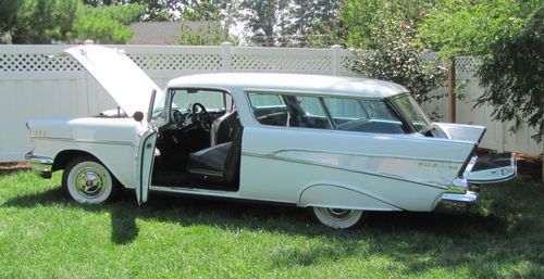1957 Chevrolet Nomad Wagon White Exterior Lots Of Shiny Chrome Gray Interior on 2040-cars