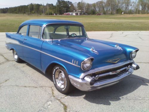 <h2> 1957 Chevy 2 Door Post, 283, 4 speed, Good solid body, Paint is at least 10 years old, Still shines and looks pretty good, interior has been redone, trunk has been replaced, Has Belair Trim, Title says Belair, Don't know either way, Runs & Drives Very Well, May Trade on other antique/classic/muscle cars, call Mark for more details 770-519-5109