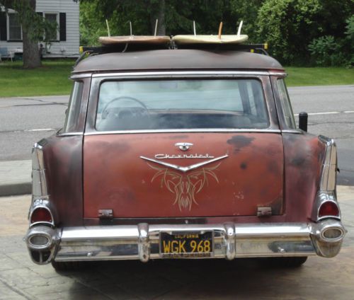 1957 Chevy 210 Four Door Station Wagon Rat Rod 1957 Chevy Station Wagon, 283 Four barrel mated up to a column mounted 3 speed with over drive. New mild cam, lifters, timing chain, Edelbrock intake and carb, wires, plugs and chrome air cleaner. New Ridler rims and tires, 18's on the front and 20's on the back. The car is lowered but not bagged. Radiator was recently re-cored. Alternator, ball joints, brake lines and all glass was replaced. The wipers do not work and the heater duck work is missing. No rust! The car runs and shifts great! The surf boards come with the car! youtube video of motor - https://www.youtube.com/watch?v=TxFlW6EEjYQ&feature=youtu.be youtube video of car driving - https://www.youtube.com/watch?v=rYGOdyIqUlM&feature=youtu.be The truck is for sale locally so I reserve the right to end the auction early. If you have zero feedback please call me before bidding. The car is available for inspection at: Bourget's Bike Works of Rochester 5570 Ridge Rd W Spencerport, NY 14559 585-349-4123 bourgetsrochesterny.com NYS Buyers must pay 8% Sales tax, tag and title fee's. Sorry we are not taking trades at this time. |