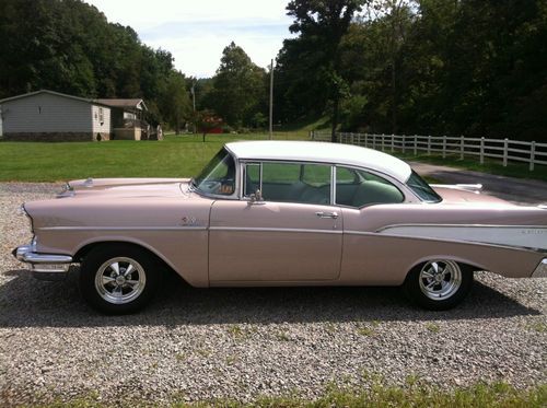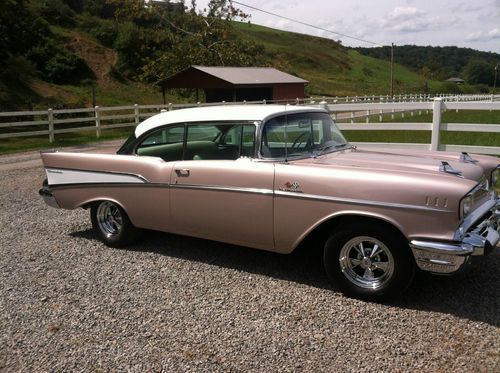 1957 chevy rare 210 hardtop frameoff restoration new gm 350 ramjet fuel injected motor rebuilt 700r overdrive trans orginal inside with new door panels and headliner and carpet all new glass vitage air new bumpers and grill lots of new trim 450 miles since restoration dusk pearl and white front disic brakes Selling for a freind any question please call 304-627-7242