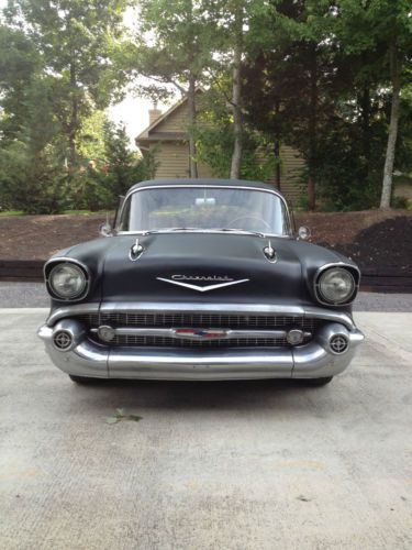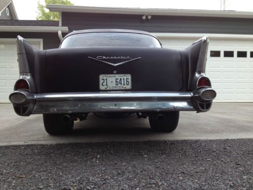 1957 4 door 210, flat black paint. 327 with double hump heads rebuilt 6500 mi ago, 365 HP, came out of a late 60's corvette, 400 tranny, r/e= 3:73 posi 8.8 from ford explorer. 4 wheel disc brakes, front and rear stabilizer bars, 2 inch mini tub, rear wheels are 10 inch wide, DS rear floor pan has been replaced. Rest of sheet metal is original, spare tire well removed and gas tank relocated, all new wiring, radio in glove box, 3 point front seat belts. Questions: Bill 865-675-1200