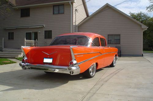 1957 Chevy 210 , Rotisserie Restored,350, 5-speed Stick..pearl Orange!! Like New on 2040-cars