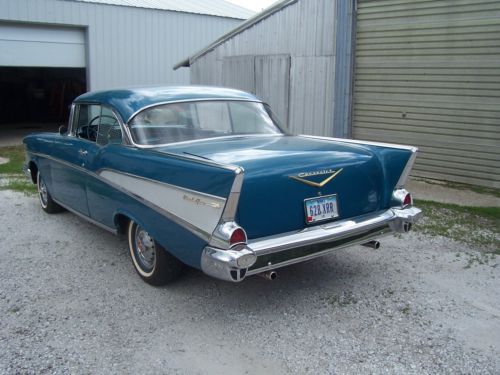 selling this beautiful 1957 chevy 2 door hardtop,had frame off restoration 8 years ago,all orignal except engine and trans,has a 66 327/275h engine with a 350 turbo trans,this is a very clean 57,runs and drives good,it is a fender skirt car and i have the skirts.has spinner hubcaps,interior very nice,good tires,dual exhaust,new rubber around doors.not perfect but very nice solid car..clear title in my name and currently plated....