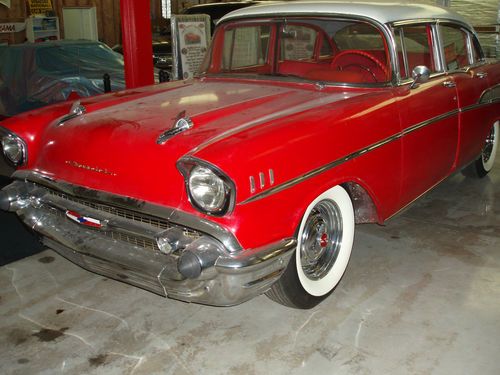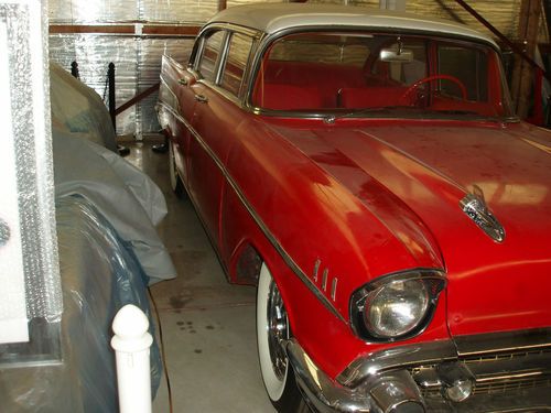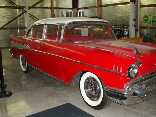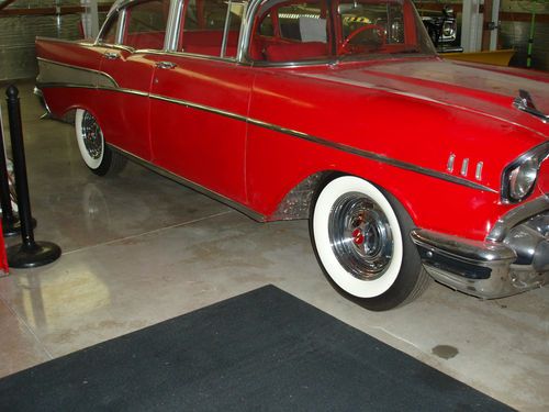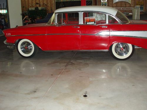 1957 Chevy 4 Dr. 283 Powerglide Coker Wide Whites Cragar Astro Wheels Duals on 2040-cars