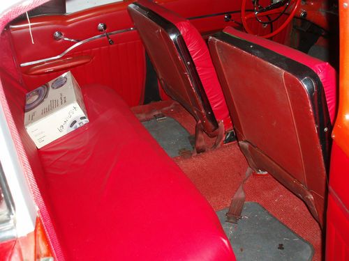 1957 4dr. chevy for fun ! I fixed the brake lines and the fuel and trans lines, someone put a newer gas tank and sending unit and straps, I put new stock mufflers and dual exhaust from the old header pipes all the way back, new coker wide white walls and chrome cragar vette wheels with cop caps and 57 tri bar spinners, it looks like all the chrome on the front was replaced along with the grill, the back looks like the bumper ends and tail light housings were replaced all the stainless trim on the outside is there, the paint and body work is rough ( 50 footer) the front springs are newer but shorter, I'd do front bushings some of the body mounts under the outer floor pans are rusted and some of the frame rail needs to be patched. nothing that can't be fixed with a grinder and a welder and some steel (THIS MUST BE FIXED TO BE ROAD WORTHY DON'T BUY THIS CAR IF YOU CAN'T FIX IT) this car lot drives great but must be repaired. trans leaks it does come with a new pan gasket and tail shaft seal but I'm not sure where it's leaking from. I think the engine and trans and radiator is around the 1964 year not a cast iron powerglide, motor is quiet and seems to run great! newer alternator and I put the right harness on the alt so it does charge. for someone who likes to do these repairs this is the car for you! and the bottom line in the end it's a cheap 57 chevy ! that always has a resale value. also comes with a aftermarket radio/player, antenna kit, and some black and red cheap seat covers, fronts look like impala buckets? also a PRNDL floor shifter. THIS COMES WITH A NY REGISTRATION NO TITLE BEFORE 1972 IN NY what you see is what your buying AS IS NO GURANNTES please ask questions I'll gladly answer SMOKEY