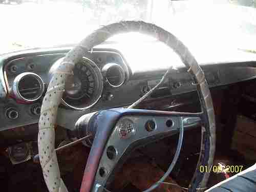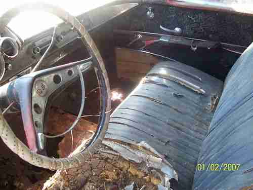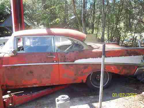 this is a 1957 chevy bel air thats been sitting for some years. its going to need a restoration. well lets start with the good. the quarters are in pretty good shape also the inner quarters are just as good. the dash is all there along with original radio. seats and door panels need redoing. motor is a 400 sb that does not turn over a turbo 350 trans with home made cross member.all the body mounts are still good all except for one look at pics. frame, rear end, and front suspension, all seem good. all the bumpers molding and chrome is all there whats not on car in pics i have. Now for the bad or the worst parts of the car. Its going to need floor pans front rear and trunk most of the suports are fine.the trunk lid has rot on the inside. there is no back window. both doors are rotted drivers side is not bad and i think is fix able. passenger side is bad cowl panel has rot in places. the hood is good it has some pin holes where the leaves sat. the fenders are the same way thin in some areas on the top but fix able. the bottom of the fenders have some rust also. inner wheel wells are good the front of fenders are good. rocker panels are ok on outside. there is some rust on the in side in a few spots. if you have questions or need any more info feel free to call 843 599 8088 if you need or want more pics send me your email and what you want pics of and i will send them right over. thanks