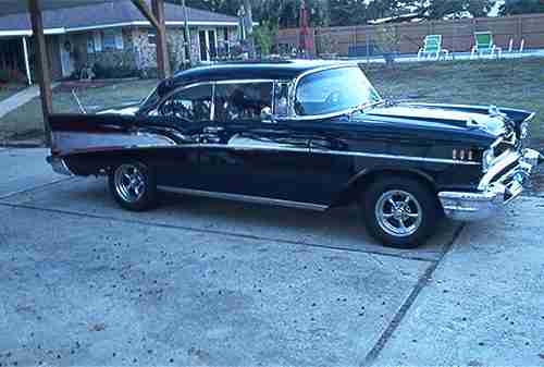 This is truly one of the finest 57s around. I owned one two years ago that cost over 125k to build and made the cover of cruisin style mag. and was featured in the feb 2010 issue and this cars puts it to shame. Not that good with a compter, I dont know how to do all the color line items and all the fancy stuff people do with them so this will be plain and simple and Iam sure I will forget a lot of stuff that the car has on it. I will start by saying I reserve the right to end the auction early as I will be putting a sign on it this weekend and may sell it locally. According to the man who built it it was a factory PB,PS,power antenna, factory air and padded dash car.It was finished in 2008 and has 1800 miles on it since build. It had never been washed unit I bought it, its just that kind of car. The bottom of the car looks like the top. This car was like new before the ever started the build but thet wanted something special. This car was dipped in Jackson ms. but not your normal acid dip. The process on the car is called an It electro-alkaline dip. This this the straightest 57 I have ever seen and I have owned a lot of them(17) I dont know if Iam crazy or stupid but the number is true and I have seen hundreds more.All the stainless trim except for a couple pieces and bumpers are supposed to be orginal. Starting with the engine its a tune port injected 350 out of a 89 corvette (22mpg) with alum. heads and late model manifolds. It has a built 700 R-4 with a later model GM Dana positraction with low 3 some gears, I think its a 308. It has 4 wheel power disc brakes. Has a huge Griffin with dual fan cooling system, battery is mounted in the trunk. It has front and rear sway bars, all stock new suspension. The interior is done in a fawn colored glove leather. I has never felt leather this soft. All the inside window trim and upper arm rest is all done in leather. The car has an Ididit column,vitage air which run throught the console to the rear, padded dash,power antenna, power windows,raingear wiper system with squirters, column shifter, radio is a piece of junk but it plays (cassette). I,am having trouble loading pictures to if you need to see more email hookhorn@msn.com . Trunk is aslo done in leather. This is a car you can drive across country. it is not a hot rod but dones run strong for what it is. Thanks for looking , please dont ask for resverve but you can make an offer. You may come and inspect and drive the car or send an appraisier at any time with a days notice.
