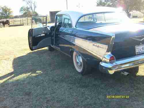 Up for sale is a Restored 1957 Chevrolet Bel Air four door Hard Top. This is 350 V8 motor. The car comes with all new wiring, brakes, wheel bearings, shocks, fuel lines. The interior is also brand new. The paint is 12 years old and still looks great. The bumpers and trim have been rechromed. Please call Milton for any further assistance 903-583-2972 As the car is for sale locally, seller reserves the right to end the auction at any time. All Texas residents must pay sales tax and registration fees. All customers pay $150 doc fee $500 deposit due within 24 hours of end of auction. Full payment expected within 7 days. Buyer is responsible for vehicle pickup and shipping.
