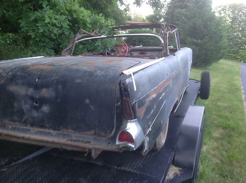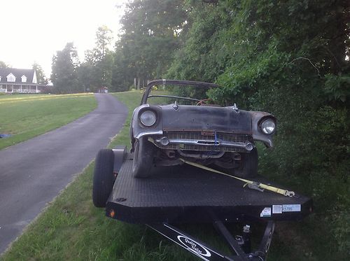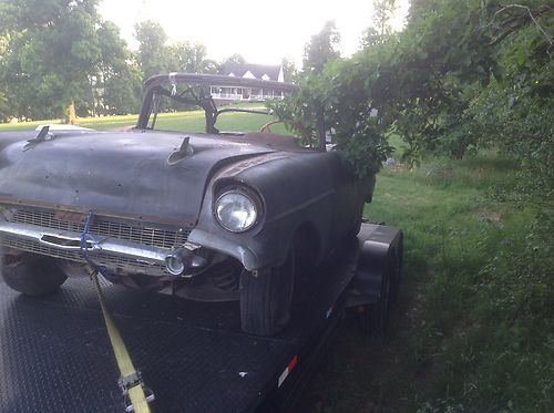 You are bidding an original 57 chevy convertible, has all the hard to find stainless with top switch and pinch wield moldings, nice solid frame as you can see on the picture. this auction is only for car WITHOUT MOTOR AND TRANSMISSION.