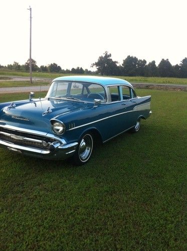 For sale is a rare and beautiful 1957 Bel Air . It has 27,000 origonal miles not a rebuild or new engine. And under the car is rust free. This car has been kept inside it hole life. We have the origonal wheels and tires from when it was bought new, the origonal bill of sale as well. We bought the car from the sun of the man that bought it new so it has not been passed around. When you hit the key it starts first turn over and drives perfect. Driver side glass is cracked and pictures will show this. Call Brad at 573 429 6382 if I can help you .