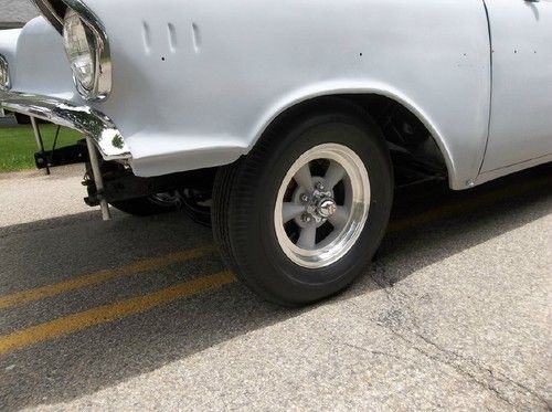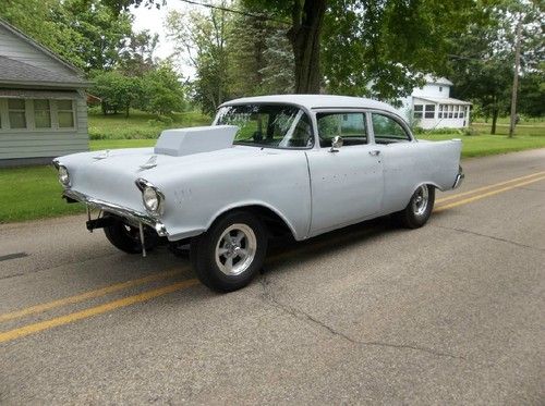 1957 chevy 2 door sedan gasser or 2 lane blacktop style car,fresh built 355 , trw forged flattop pistons, moly rings 10/10 crank, high volume oil pump,double roller timing chain,melling 280 cam, 461 casting camel hump fuelie heads with screw in studs 550 lift springs , 5 angle valve job, pc seals, elddelbrock street tunnel ram with 2 600 holleys, new distributor with pertronics electronic conversion. motor is all new with about 500 miles on it runs very strong,turbo 350 trans with b&m 2500 stall converter,rearend is original 57 with 370 gear, the entire driveline is fresh , heres a list of what is new on the car new aluminum radiator