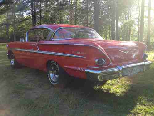 1958 Chevrolet Bel air *** NO RESERVE***- this is a great car a pleasure to drive. It is a matching number car, very solid, has a 283 engine with powerglide transmission still has a generator, has all new wiring, new heater motor, new windshield motor, new cobra tires, new magnaflow mufflers from exhaust with stainless tips at wheel. The paint has a few little knicks on it - good floor pan - all new rubbers around doors and trunk and windows. I have original radio in the trunk but was going to put a cd player in it and never did. Has air shocks in the back. Interior is immaculate. This is a great car and will be a very good car for someone. There is not many of these cars in this great of a condition. Just look at the pictures real good and you will see this car will sell itself. Good luck bidding. Only serious bidders please. Reserve the right to cancel any bids that have not bought or sold anything before. Sold as is. Do not want any trades I would not be selling if i did not need the cash it is a wonderful car.