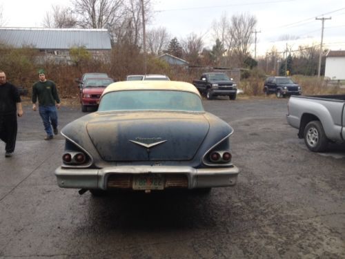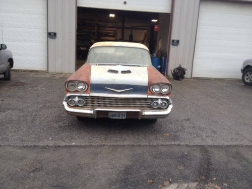 up for sale is my 58 chevy biscayne. this car was brought up from florida and has a clear florida title. I will describe this car as i have looked it over very well. I dont have any more pictures right now so please dont ask me to take some as the car is in a dry garage with no power or lights untill it sells or we get time to work on it.