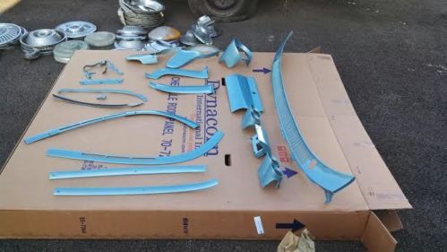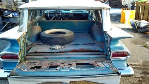 You are looking at a 1959 Chevrolet Belair Wagon. Original interior and exterior is tuxedo. The front windshield and windshield rubber seal are both new. The front dash has been sanded to metal, body work, put in sealer and painted. The glove box , dash cluster, interior mouldings, steering column, steering wheel and front windshiled cow are all painted in orignial tuxedo color. Front windshield mouldings were repaired and polished. Shift lever , turn signal , ignition ring, dash cluster ring , horn ring, radio cover and wiper arm have all been chromed and also has a New dash cluster lens kit. This very clean driver has a 283 motor , 2 speed transmission and runs good. The following parts are new and have been installed; Master cylinder , radiator, radiator hoses , brake lines, gas line, brake hoses, brake shoes, gas tank, drive shaft , wheel cylinders, brake drums, brake hardware and 2 rear floor pans. This wagon has alot of potential and would be a very nice driver for the summer. Buyer is resposible for shipping , No returns. Contract email bmgarland59@gmail.com cell 9518338362 Good luck bidders !! |