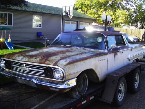 1960 CHEVROLET BEL AIR 4-DOOR HARD TOP SOLID WESTERN KANSAS CAR VERY MINOR RUST JUST POKING THROUGH IN LOWER QUARTER PANELS BEHIND THE REAR TIRES AND IN THE FRONT FENDERS 283 SMALL BLOCK CHEVROLET ENGINE, 2-SPEED POWER GLIDE WE ARE WORKING ON THIS CAR AND WILL HAVE IT WERE IT WILL LOT DRIVE WE ARE REPLACING THE MASTER CYLINDER, WHEEL CYLINDERS, FRONT BRAKE HOSES THE FUL TANK ON THE CAR WILL NEED REPLACED DUE TO THE FACT THAT THERE IS A WHOLE IN IT A SMALL 1 GALLON TANK WILL BE MOUNTED UNDER THE HOOD TO START THE CAR CAR DOES COME WITH A CLEAR KANSAS ANTIQUE TITLE CALL SCOTT 620-214-3675 IF YOU HAVE ANYMORE QUESTIONS RYAN AT ASAP TRANSPORT 913-201-0133 CAN GET YOU A SHIPPING QUOTE IF YOU NEED IT CAR IS SITTING ON OUR CAR LOT ANDREWS AUTO SALES 605 EAST 5TH SCOTT CITY KANSAS 67871 THE CAR IS FOR SALE LOCALLY AND WE CAN END THE AUCTION AT ANYTIME PLEASE ONLY BID IF INTEND TO BUY
