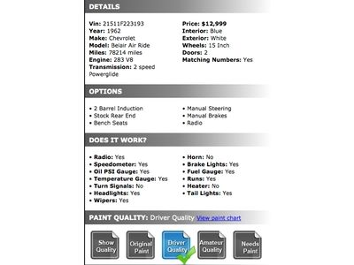 1962 Chevrolet Belair Air Ride 283 V8 Matching Numbers 2 Speed Powerglide on 2040-cars