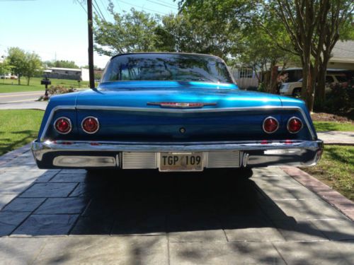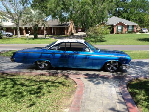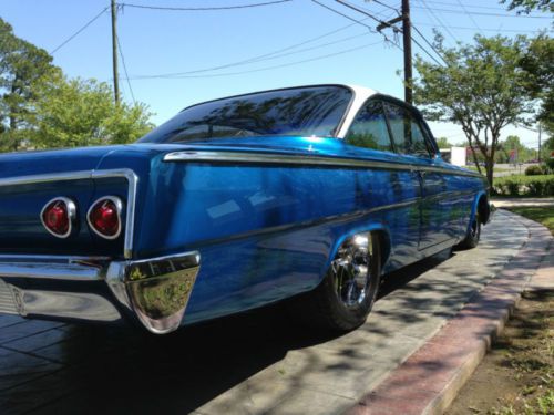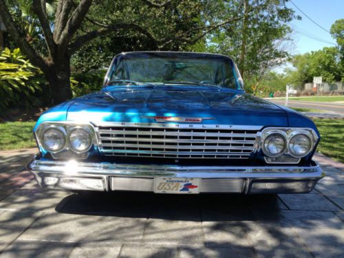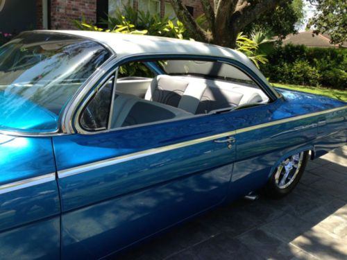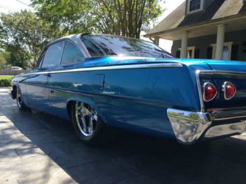 1962 CHEVROLET BELAIR "BUBBLETOP" THIS IS A "BEAUTIFUL" ROTISSERIE-RESTORED 1962 BUBBLETOP!! ""NEEDS ABSOLUTELY NOTHING"" 1 OF 1200 ""REAL"" 409 BUBBLETOPS!! IT HAS THE FOLLOWING UPDATES AND ACCESSORIES: 409 DUAL-QUAD 409, 400HP DRESSED TO THE HILT TREMEC 5-SPEED MANUAL TRANSMISSION CURRIE FORD NINE INCH REAREND POLISHED 4-CORE ALUMINUM RADIATOR W/DUAL SPAL FANS POWER WILWOOD DISC BRAKES ALL AROUND CHROME ROCKET BOOSTER WHEELS 235/45/17 FRONT; 265/50/18 REAR AUTO METER GAUGES POWER STEERING AND WINDOWS AIR CONDITIONING CUSTOM AUTO SOUND SYSTEM ULTRA LEATHER TWO-TONE INTERIOR TWO-TONE BLUE AND PEARL WHITE BASECOAT/CLEARCOAT BUFFED TO PERFECTION EMS HOOD HINGES AIR-RIDE SUSPENSION HOTCHKIS FRONT AND REAR SWAY BARS THE UNDERSIDE OF THE CAR IS AS BEAUTIFUL AS THE TOPSIDE. OVER $100,000 WENT INTO THIS BUILD!!! SELLS TO U.S. ONLY!!!! Any questions call: 315-493-3388