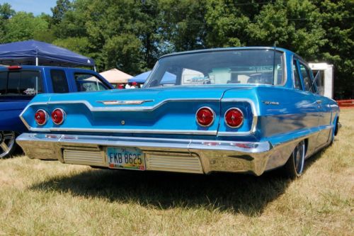 1963 Bel Air 2 Door. Car features air ride suspension, 4 wheel disc brakes, 350/350 combo, and 20/22 raceline wheels. Did a frame off on the car 2 years ago. Painted the frame with por15, replaced every bushing/body mount/suspension component and all fuel lines, brake lines, transmission lines are all stainless steel. Interior has been redone and just needs a headliner to be complete. Needs body work and paint or drive and enjoy as it is. Runs and drives great. Gets tons of looks and complements every where I take it. Wheels/Tires: Raceline Static 5 Wheels - 20x8.5" in the front and 22x10" in the rear Capital Tires 245/30R20 Front and 265/35R22 in the rear Suspension/brakes: Cool cars rear wishbone 2" drop spindles powered coated trailing arms and control arms moog body mount bushings, suspension bushings and ball joints 2600lb bags in the front and 2500lb in the rear 8 gallon tank 8 3/8" smc valves avs 7 switch box 2 viair 380c compressors 605 power steering kit from classic industries chrome booster/master cylinder 4 wheel disc brakes with slotted/cross drilled rotors powder coated calipers stainless steel brake lines motor and trans: 350 SBC Turbo 350 Trans dual exhaust stainless steel transmission lines and fuel lines Driveshaft has heavy duty carrier bearing and slip yoke Interior has recently been completed with pleated seats and door panels. Just needs a head liner installed and its complete. Has a pioneer cd player in the glove box hooked up to 2 6 1/2" in speaker pods in the front, 2 10" subs and Rockford amp in the trunk for a little bass. For any questions or further information please Call or text me: 614-402-4333. I encourage all bidders to call or text, so I can answer any questions prior to bidding. If you need the car shipped I will do my best to assist you in any way I can, but at the Buyers Total Expense. |