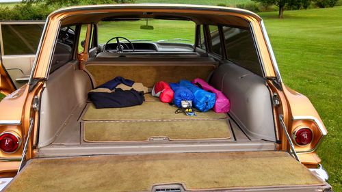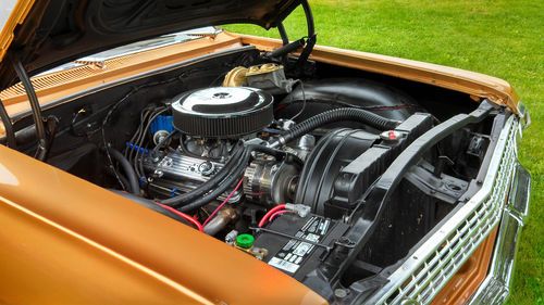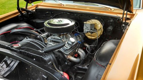 The bad: 1) The original gas tank was junk and had to be replaced. They are not reproduced and are very very hard to find. In order to resolve the issue an aftermarket 15 gallon steel tank was installed in the storage area under the rear deck. The tank is still filled from the factory location and has a sending unit that is correct for the gauge cluster. The install was very well executed and for all intensive purposes functions identical to the original. 2) The only rust in the car is the bottom of the tailgate on the inside. It is not heavy and is not rusted thru. Also, one body mount on the drivers side is rotted, which I find odd considering everything else around it is excellent as are all the others. 3) The car has a mini starter (which came with the crate engine), that I do not care for but have not spent the time / money to replace. It starts the car every time, but seems to crank slower than you would expect.