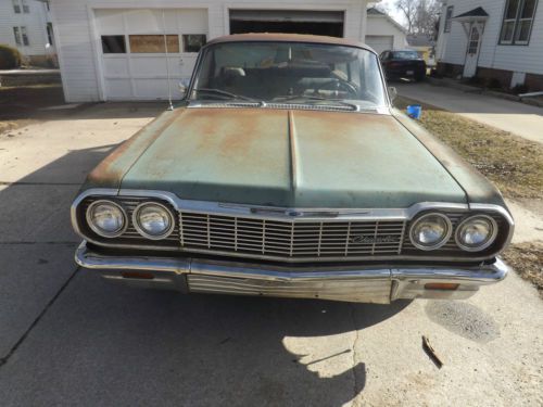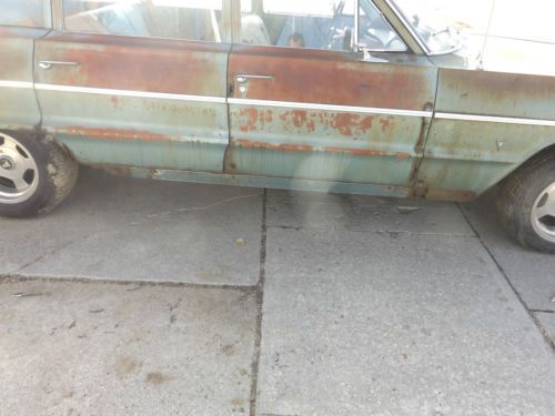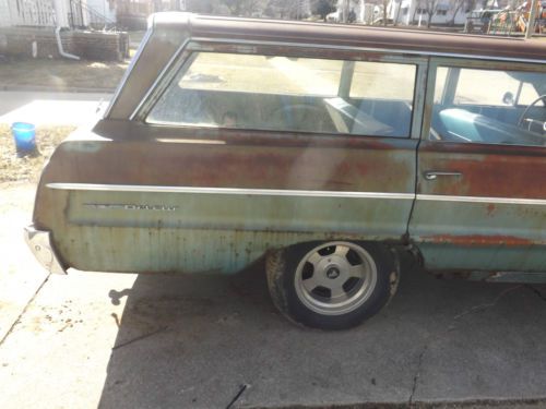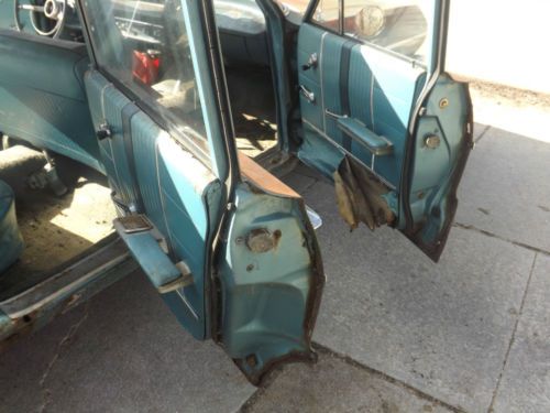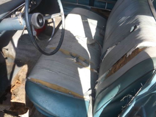 Up for auction is my 1964 Chevy Bel Air Wagon! There is no title! I will give bill of sale! The only things I can say are missing, are the hood hinges, a piece of trim that runs along the bottom of the passenger side, and a piece of trim on the rear drivers side door. The picture shows the drivers side quarter panel trim missing, but I do have it. The center cap emblem is missing on the original steering wheel, but the chrome ring that goes around it is there. There are some holes in the front drivers, and passenger side floor pans. There is some rusted areas on the body (shown in pictures). There front and rear bumpers are VERY NICE still. The grill, head light bezels, etc are still very good , there are some tears in the front seat, visors, head liner, and passenger side front door panel. The back seat, and panels are still in what I would say is very good shape (may need some cleaning) All of the original dash is there, including the factory radio, lighter, ash tray, butler trash bag, etc...and still in very nice shape for the most part. The body is very straight! There is a crack in front windshield, but all other original glass is still there and good. The rear doors still have the ashtrays. All window cranks, and handles are there. There are some pretty decent rims on the car. There is an engine in it now, currently not running.The frame is good. This is a very good road worthy project car, or parts car... Buyer is responsible for shipping/pickup (I will help get it loaded). I will help get it loaded. There is a $100 non-refundable deposit due at end of auction. Would like the vehicle picked up within a week of the auctions end. If the vehicle is paid for and you need a little more time to get it, message me and we may be able to work something out. Thank you, and good luck.