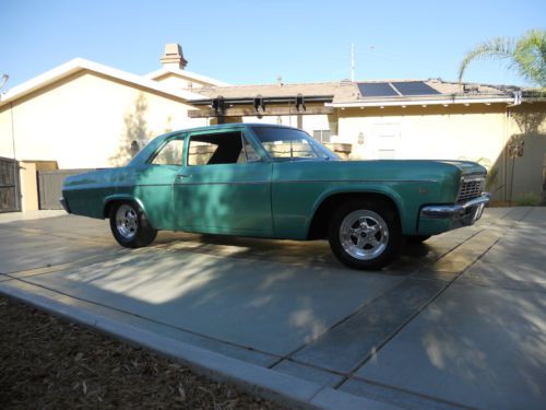 Up for auction is my hard to find 1966 Bel Air 2 Door Post Car. The car has a brand new black custom interior from the head liner to the carpet, EVERYTHING. With new side trim and interior the car has a very stout look. Front tires are 225/60/15 and 275/60/15's in the rear complete the look and right stance. The car has a very rear optioned 327 V8- 4 bbl carb with a factory two speed automatic transmission. Power Steering and Power Brakes with Factory Air Conditioning that is complete but not working at this time. Newer complete dual Flowmaster exhaust from factory correct cast exhaust manifolds. Body is not perfect but presents very well. Some of the small trim and items are missing and car has had some body work done on the drivers quarter that could use some attention. Very clean and dry trunk which is now painted. Picture of trunk is before paint to see how clean. But look at the pictures and you can see a very cool and rear body style. Mileage is deemed to not be correct. You should have your finances in order before you bid. Reserve is low and will work with shipping of car. |