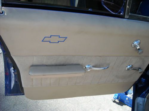 Hello everyone up for sale is a 4 door Chevy Belair. its has a 350 chevy engine and a 700r4 transmission. It has an Edelbrock carb (Manuel choke), intake manifold, and air filter.Comes with A/C, front disc brakes, dual exhaust with flow masters,new 3 row radiator, condenser fans, American torch thrust wheels, power locks and a viper alarm system.Windows are tinted as seen on the pictures. Odometer reads over 28000 miles Only problems are that the paint has scratches and peeling, wipers used to work but now they don't and the speedometer doesn't work, but placed an aftermarket one so you know how fast you are going. The tags are up to date if you were wondering. Great classic car