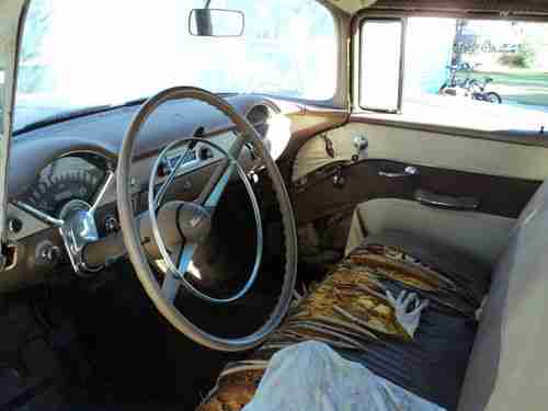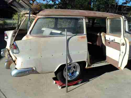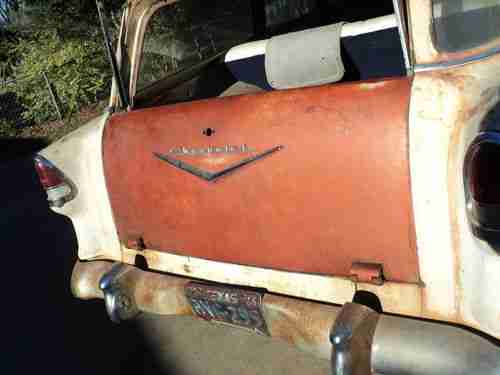 Just out of long term storage. Very nice Texas 55 chevy 4 door Wagon. Great basis for an easy restoration. Very solid wagon. Floors, cowl, spare tire well, door jams, storage area, rear panel, roof, hood, rocker panels, chassis, all solid. No broken glass. Dash complete never messed with. Original Front Seat. Missing rear seat. (Have replacement front and rear seats with matching door panels, that come with the car) All Stainless is excellent. Missing one door spear. New tires and rims, never driven on. No engine or transmision. Typical dents needing repair. Small easy rust repairs on doors. Typical surface rust issues.(Texas sun kills paint) Have most pieces you see missing. More pictures available.