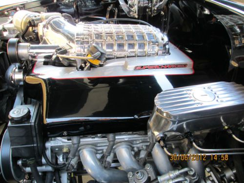 PROFESSIONALLY BUILT BY MINT RESTORATIONS IN NEWPORT RICHEY, FLORIDA. COMPLETE BODY OFF BUILD FROM THE GROUND UP. NEW FLOORS, QUARTERS AND DOOR SKINS WERE USED. ALL NEW GLASS, CUSTOM LEATHER INTERIOR WITH BUCKET SEATS AND CONSOLE. THE DETAILS: ORIGINAL BOXED CALIFORNIA FRAME RIDETECH AIR RIDE WITH DUAL HIDDEN TANKS AND CONTROLS HIDDEN IN THE SPARE TIRE WELL ALONG WITH THE BATTERY RIDETECH STRONG ARM CONTROL ARMS AND ADDCO SWAY BAR ELECTRIC POWER BRAKES WITH SSBC RED CALIPERS AND 11" ROTORS 4 LINK REAR SUSPENSION NEW E-Z WIRING SYSTEM INTERIOR FLOOR, DOORS AND CEILING OF CAR WRAPPED IN DYNAMAT INSULATION BUDNIK X SERIES G10 BILLET WHEELS WITH CUSTOM BLACK ACCENTS - YOKAHAMA 235-45-18 TIRES FRONT AND 295-10-20 REAR - WHEEL OPENINGS WERE MOVED FORWARD TO ACCOMODATE LARGER REAR TIRES LS1 ALL ALUMINUM ENGINE WITH 4L60 4-SPEED AUTOMATIC TRANNY MAGNA CHARGER SUPERCHARGER WITH CUSTOM MADE ENGINE COVER AND AIR INTAKE SYSTEM STREET AND PERFORMANCE CERAMIC COATED HEADERS WITH CUSTOM BUILT CERAMIC COATED EXHAUST SYSTEM EDDIE MOTOR SPORTS BILLET HOOD HINGES WITH CUSTUM MADE INTERIOR HOOD RELEASE AND LATCH SMOOTHIE FRONT AND REAR BUMPERS CUSTOM ALUMINUM FUEL TANK WITH IN-TANK 400H/P ELECTRIC FUEL PUMP CUSTOM LEATHER INTERIOR FEATURES ALL LEATHER BUCKET SEATS, REAR SEAT AND CONSOLE, MATCHING HEAD LINER AND CARPET, HIDDEN CONTROLS, SEAT BELTS, POWER WINDOWS, POWER DOOR LOCKS AND 2-TONE CUSTOM PAINT ON DASH AND INTERIOR MOLDINGS - HIDDEN EMERGENCY BRAKE LEVER IN CONSOLE VINTAGE A/C AND HEAT WITH A/C TO REAR SEATING POWER STEERING WITH CUSTOM MADE 2-TONE CON2R STEERING WHEEL DAKOTA DIGITAL VHX GAUGES AND CLOCK IN CUSTOM DASH WITH HIDDEN CONTROLS IDIDIT STEERING COLUMN WITH KEYLESS PUSH BUTTON START IGNITION LOKAR PUSH BUTTON FLOOR SHIFT SPECIALTY POWER WINDOWS WITH MICRO SWITCH CONTROLS IN CENTER CONSOLE HIDDEN WINDSHIELD WIPERS AND CONTROLS HIDDEN AUDIO STEREO WITH IPOD/MP3 CONNECTION WITH AMPS AND SUBWOOFER HIDDEN POWER ANTENNA POWER HIDDEN GAS FILLER IN DRIVER SIDE TAIL LIGHT WITH CONTROL UNDER DRIVER'S SEAT GAS SHOCK STYLE LIFT GATE SUPPORTS PAINT IS 4 BASE COATS OF BLACK AND 4 COATS OF CLEAR - THE BODY IS BLACK AND THE ROOF IS SILVER WITH RED ACCENTS STRIPS AND INSERTS ALL CHROME IS NEW AND STAINLESS HAS BEEN RESTORED AND POLISHED PLEASE - SERIOUS BIDDERS ONLY AND NO TRADES OF ANY KIND - CAR IS NEAR TAMPA FLORIDA CONTACT JIM AT 813-917-8581 OR jmd@alpineplumbing.net FOR QUESTIONS OR ADDITIONAL PICTURES THANKS FOR LOOKING