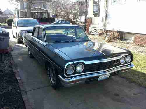 1964 Chevy Belair 4dr great project car, motor has less than 500 miles on it newer seats and carpet, will need a headliner and some of the trim , I do have some of the trim in the trunk and it will go with the car, door handles are shaved but you will need to get and install door poppers the drivers side door where the handle was removed will need some work. eldibrock carburator. this car sounds great true duel exhaust. please only bid if you are buying. $1000 due 48 hours after close of auction and the rest within 7 days. Thanks for checking out the car and good luck bidding