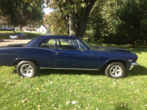 This is a rare factory V8 Biscayne with a non matching fresh 1965 396/325hp impala 4 speed engine and power disc brakes. Bench seat with original shifter. factory tach. radio delete plate. new 275/60/15 rear tires, American Racing wheels and also included is set of 4 15 inch painted rims with dog dish hubcaps for the sleeper look. This car was restored in 2007 and has been driven 12k miles since then. It was in the Coen brothers movie "A serious man" The film crew told me it was their favorite car on the set.