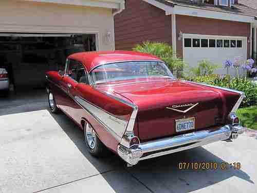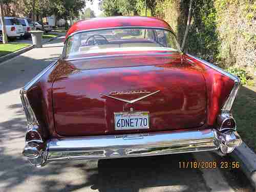1957 chevy 210, 2 dr, red and white - featured in super chevy magazine