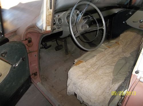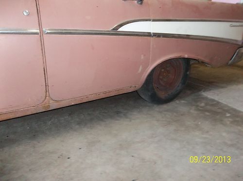 "Barn Find" 1957 Chevy Two-Ten 4 door sedan. This car is a one-owner all original "Power Pack"--car with factory power steering, power brakes, radio and electric wipers. The bright work is good, the stainless excellent. The floors are solid as is the trunk floor. There are a few minor rust places on the rocker panels and lower fenders and the body mounts are in good condition. Other than a crack in windshield the glass is in great condition. With a small amount of work this car would make a great daily driver. The engine runs, but unsure of transmission and the brakes do not work..This is a great example of a Missouri survivor.