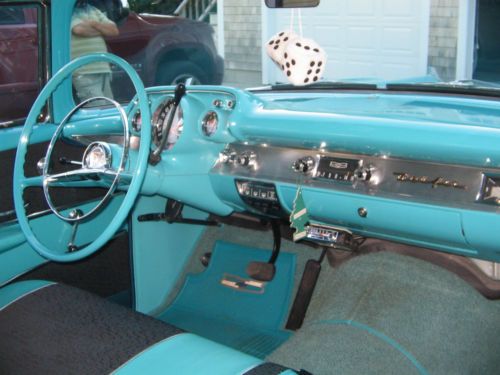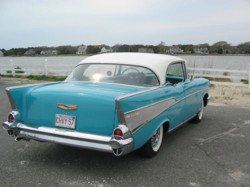 1957 CHEVROLET BEL AIR SPORT HARDTOP Rotisserie , frame off restoration. Beautiful origional color paint ,9 india ivory over turquoise ) with stunning chrome and stainless steel trim and emblems . Like new , as origional , vynal and cloth interior with www tires (bias ) and knock off rims. Rare 4- door hardtop with rare origional Blue Flame 6 cylinder engine. Engine and transmission were rebuilt. Engine runs great and transmission shifts smoothly . Beautiful rechromed bumpers with all stainless trim , badges , and emblems rebuffed . Easy to drive power steering.The above vehicle is described to the best of my ability and I assume no responsibility of omission or errors in description.Car will bve sold in as is condition with no guarantees or warrantees. Car may be sold early in auction Call with any questions.....Rick.....508-760-9901 or 598-887-6927. |