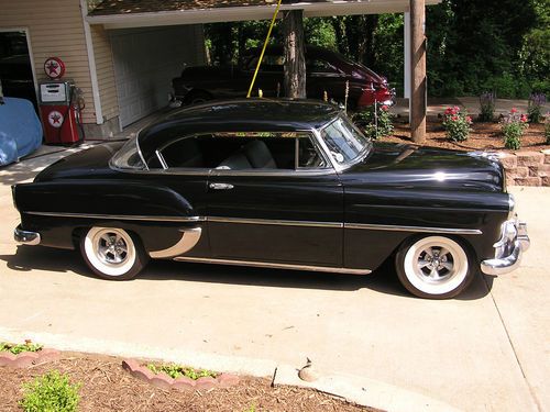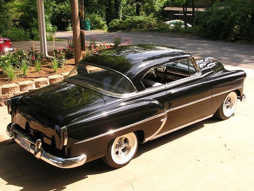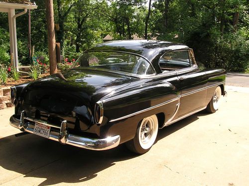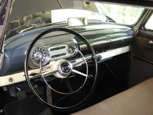 This is a very original, rare, and solid Chevy 210 series two door hard top. Out of approx 62,000 + hard tops built in 1953, only 14,000 or so 210 series cars were produced. The rest were Belairs. It only has 92,634actual miles on it. Very solid and straight body car with no signs of rust repair that I can see. All original body panels, floor pans, rockers, body mounts, fenders, door bottoms, etc. with no rust or repair work. The underside of this car looks to have been sand blasted to bare metal and painted black. Very nice job. See pics. ( the brown spots are just mud splatters from a country road with mud puddles ) The one re-paint is very shinny, smooth, and in great shape. Looks to be a single stage urethane enamel job. All of the stainless trim is in great shape. Chrome is presentable, but I would re-chrome both bumpers and grille. The grille is in great shape but it was painted chrome for some reason? I have both front and rear Chevrolet hood emblems that were removed. Both need re-chroming and new plastics if put back on. The hood bird is new reproduction. Have original in trunk also. Also have like new fender skirts and sun visors. New tune up items, belt, hoses, battery. Included is original wheels and hubcaps, and a power assist rack and pinion steering set-up for it, including the frame bracket. Suspension is all new including shocks. It was lowered the right way with dropped spindles and rear spacers. ( see pics ) New shocks, exhaust, brakes, Wide White Wall tires, etc. The wheels are rare and "REAL" original E T uni-lug all aluminum wheels. This car sits right, looks right, drives right, and stops right. You can drive it anywhere and get back home. All lights work. All gauges work. Radio and wipers do not work. Seat covers and door panels appear to be all original and still very nice except for some age stains. Headliner and carpeting has been replaced with new. Still has that great old car smell every time you open up a door. Glass is all good and rolls up and down as it should. Even the trim around the glass is in very good shape. The original 236 engine was completely rebuilt. The 3 speed transmission shifts great. Has a new clutch. Original spare still in the trunk.